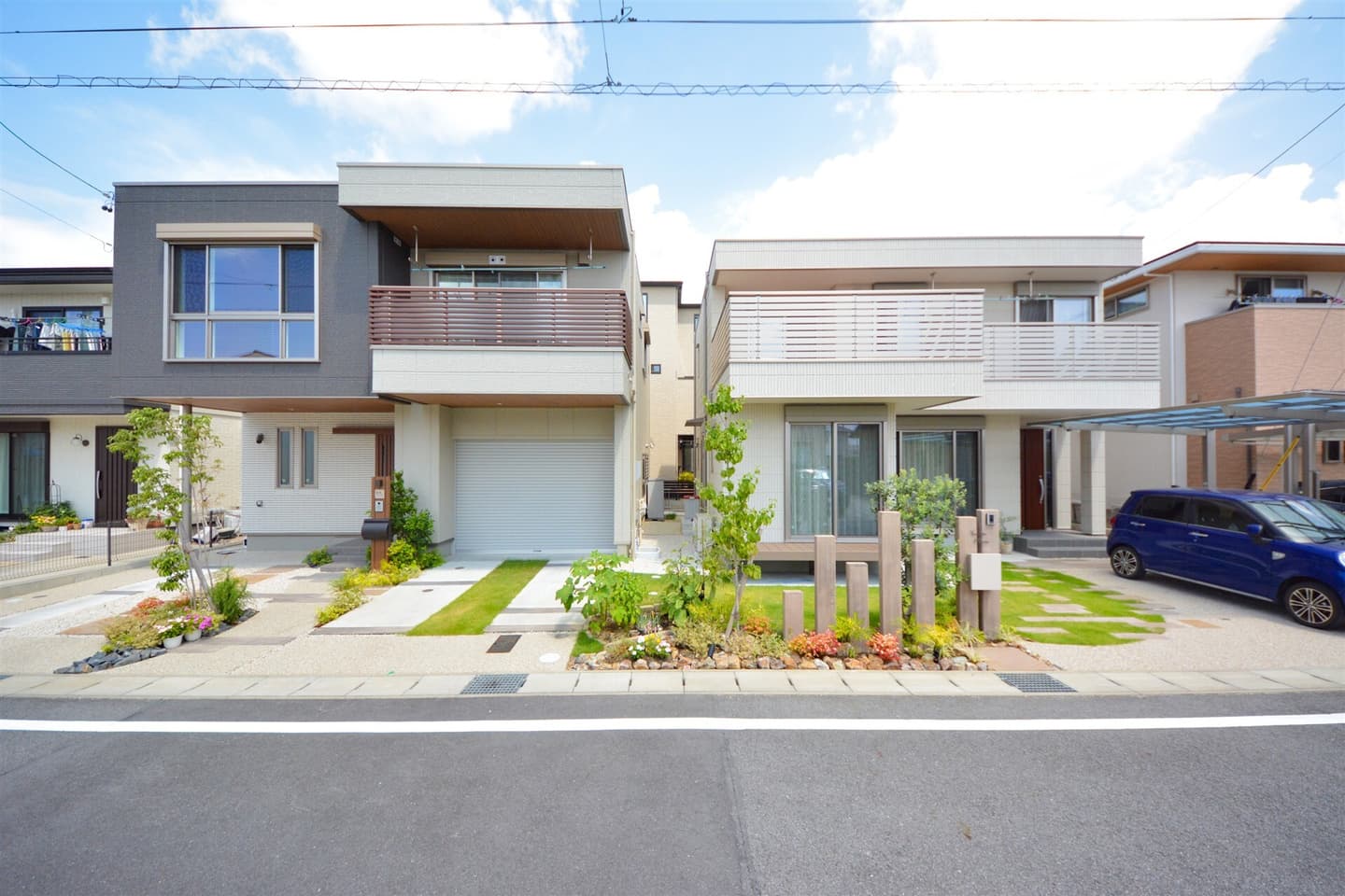 ご両親宅と娘さんご夫婦宅の外構・お庭を一緒にプランさせていただきました。
