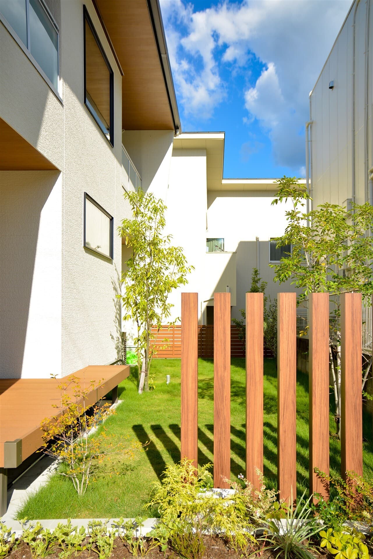 奥は芝生が一面に敷かれたプライベートガーデンになるようにしました。