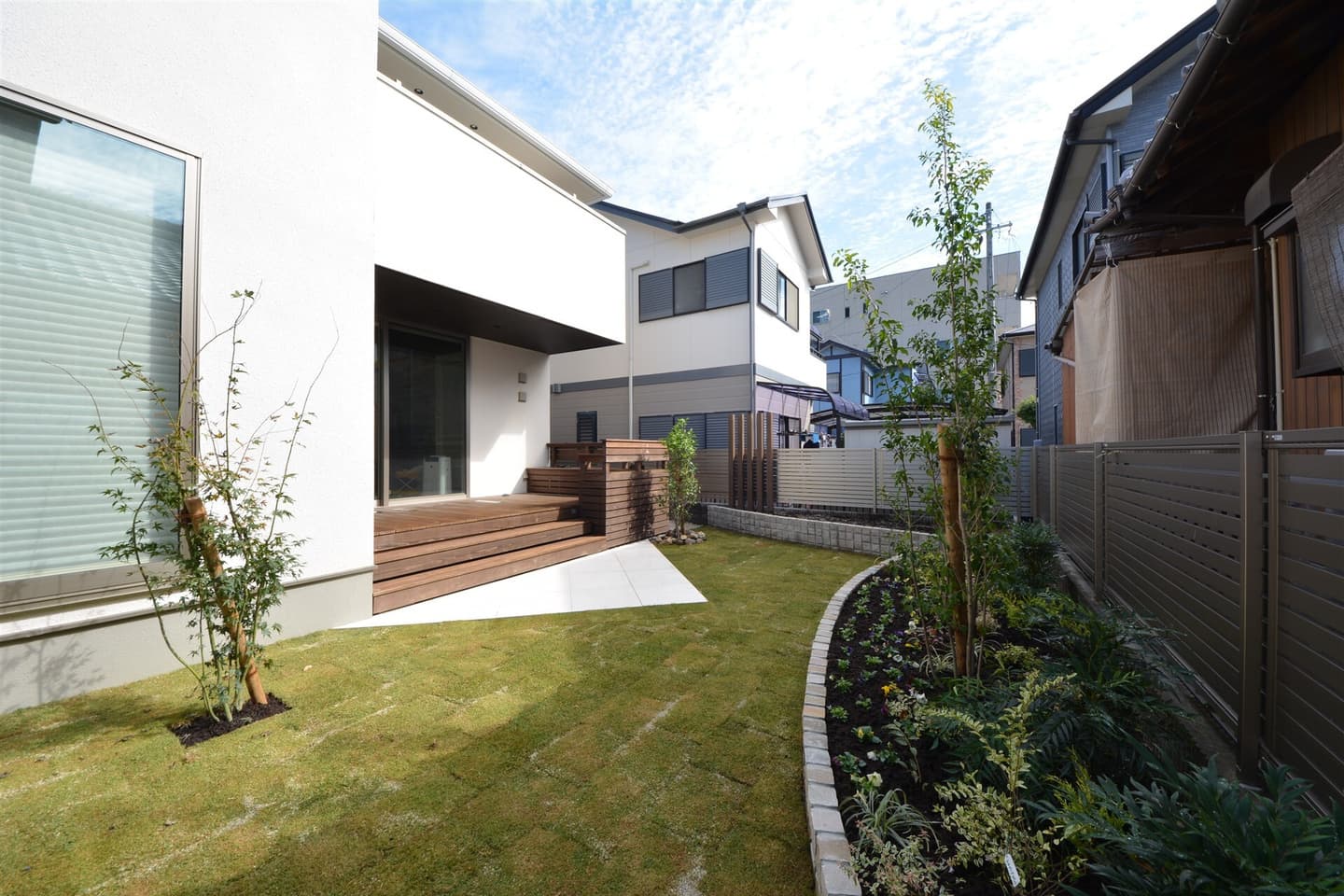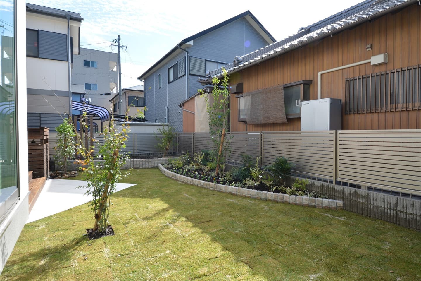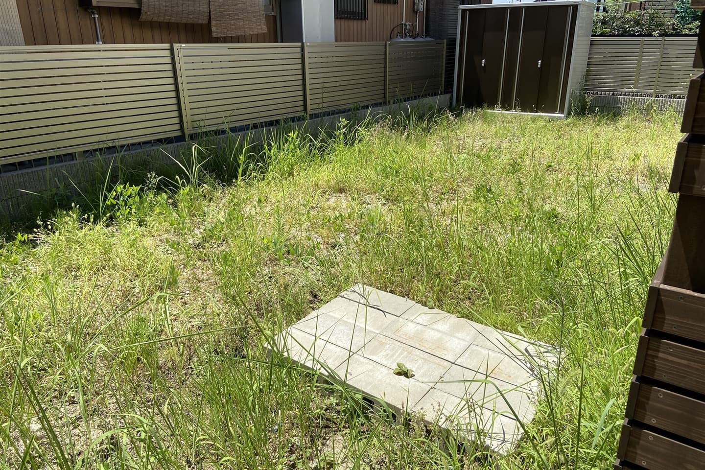 ご新築当時は土のままにしていたお庭。そのままにして一年程経過したら雑草がかなり生えてきてしまい、カーテンを開けることもためらってしまうほどになってしまったのを何とかしたいとご相談いただきました。