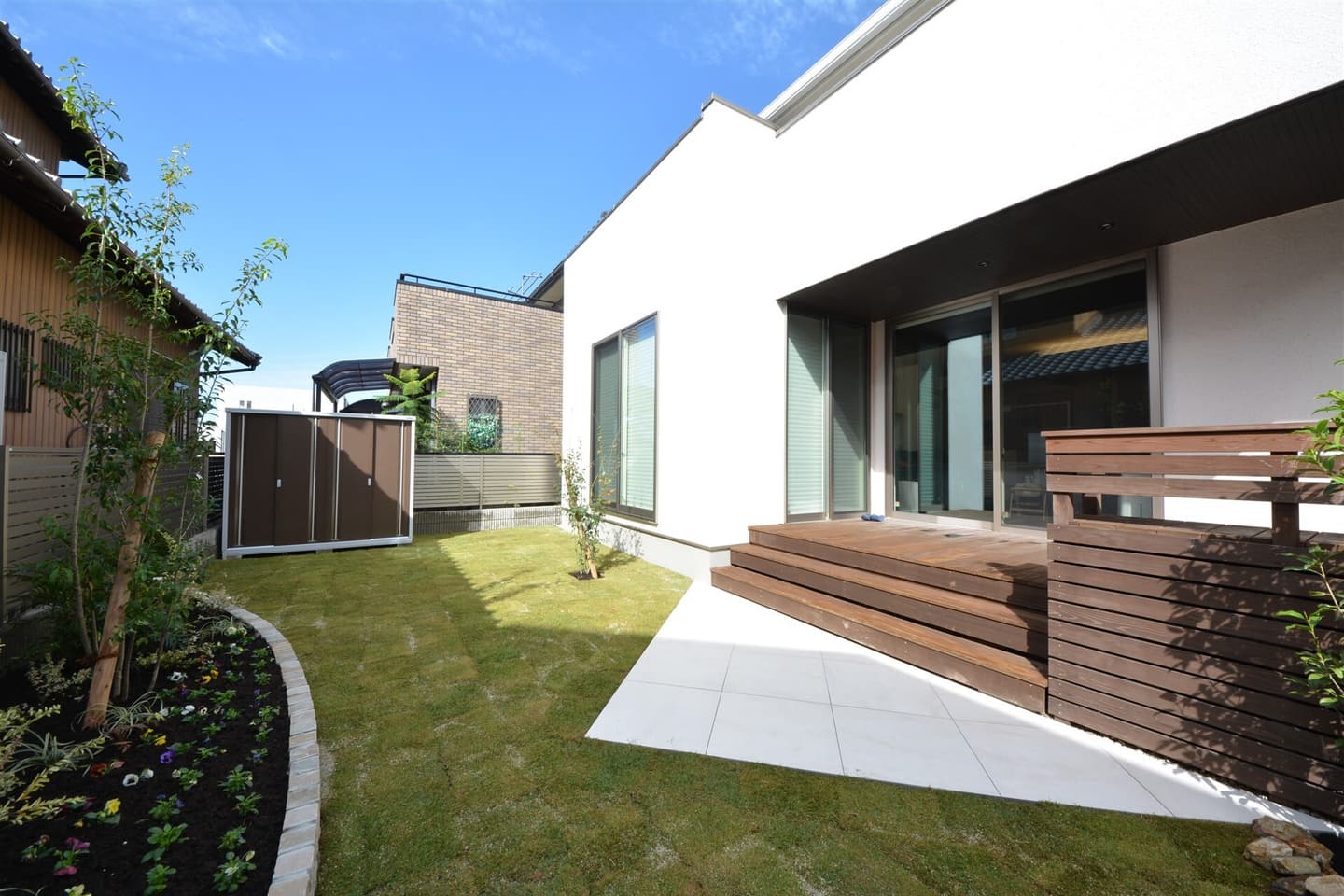 外構はシンプルに仕上げたけれど、お庭は華やかにしたいとのことでした。