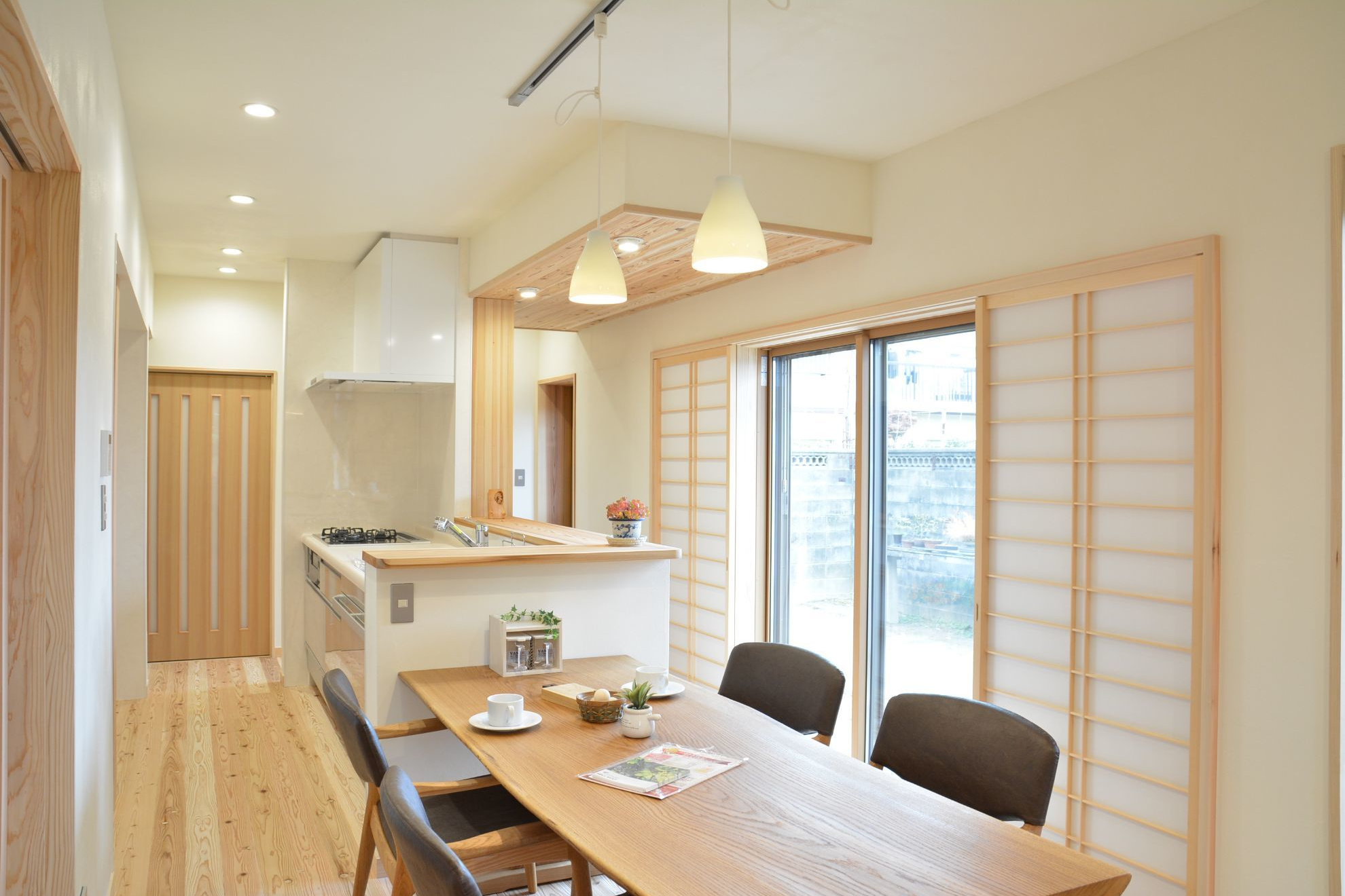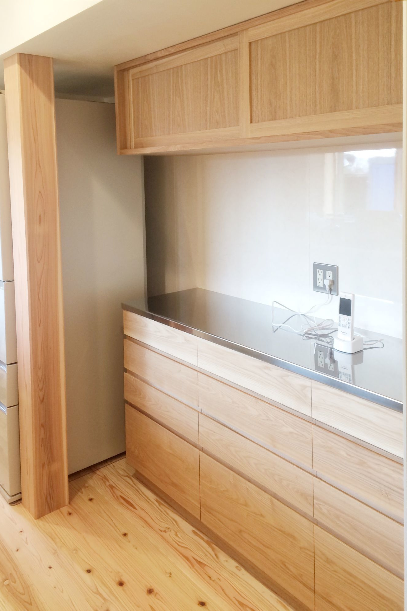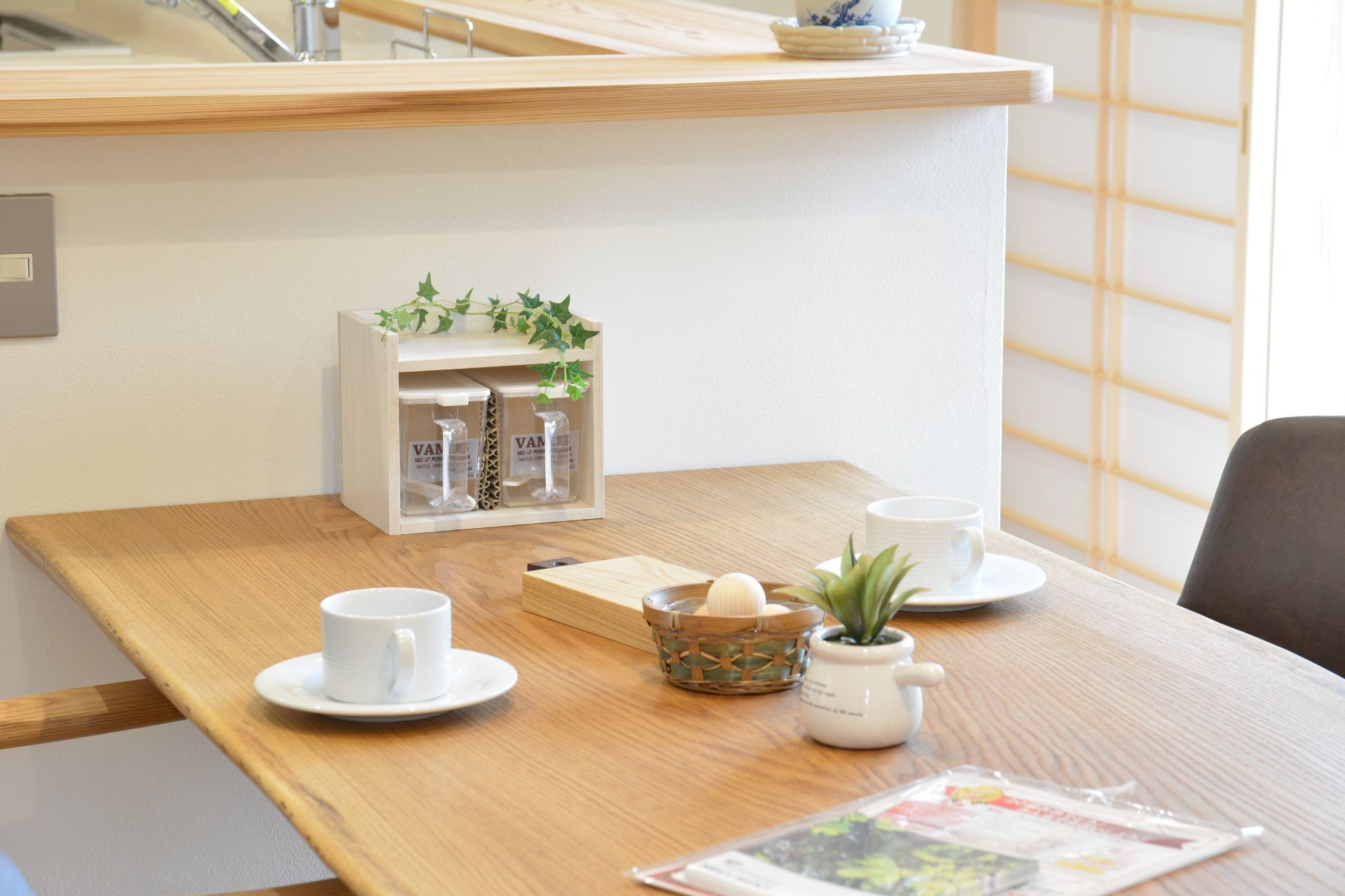 テーブルや椅子、キッチン収納などの木製家具は自社の木製雑貨と家具の店「ヘルベント」にてオーダーで製作し、部屋に合った大きさ・デザインにしました。