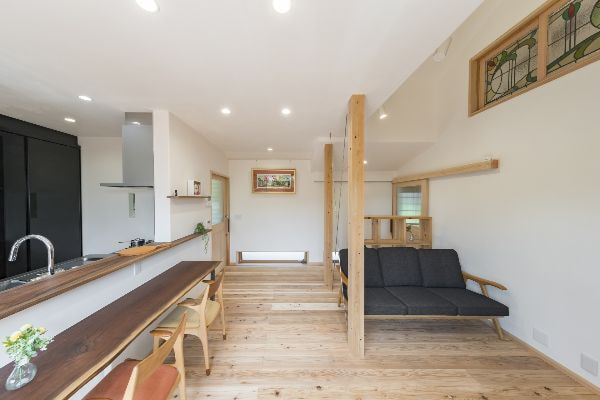 また床は杉材、壁は漆喰で、全て自然素材で仕上げたので、内装の手ざわり、足ざわりの感触が良いだけでなく、空気がおいしくなり健康にも良いので、家で過ごす時間により心地良さを与えてくれていると思います。