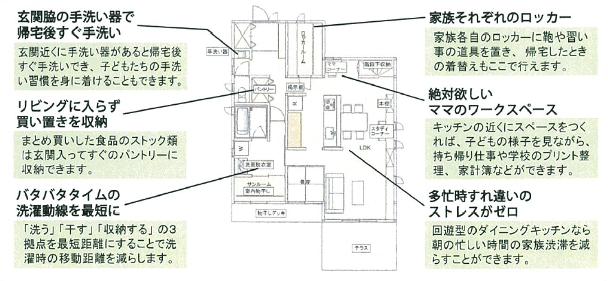 下記図面は、夫婦共働きの4人家族におすすめしたい一例です。