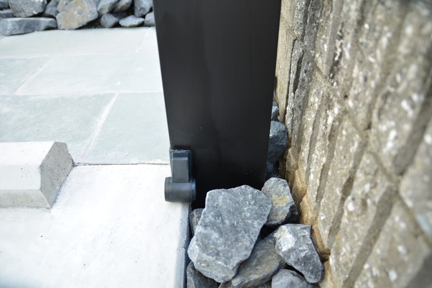道路の高低差を考慮してブロック横と目隠しのフェンスを設置。