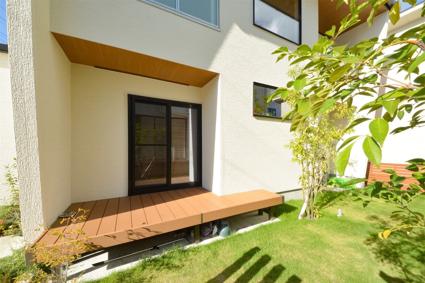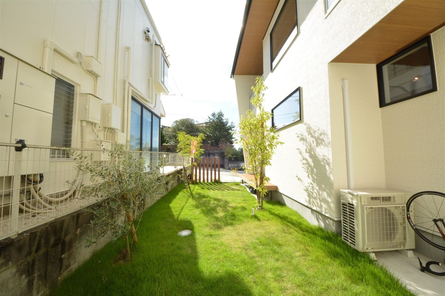 奥は芝生が一面に敷かれたプライベートガーデンになるようにしました。