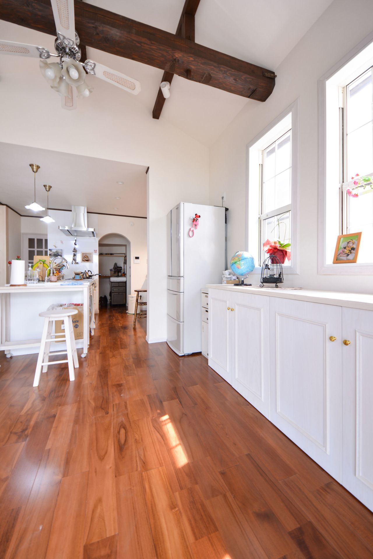 特長:キッチン、梁、和室丸窓、ウエスタンドア