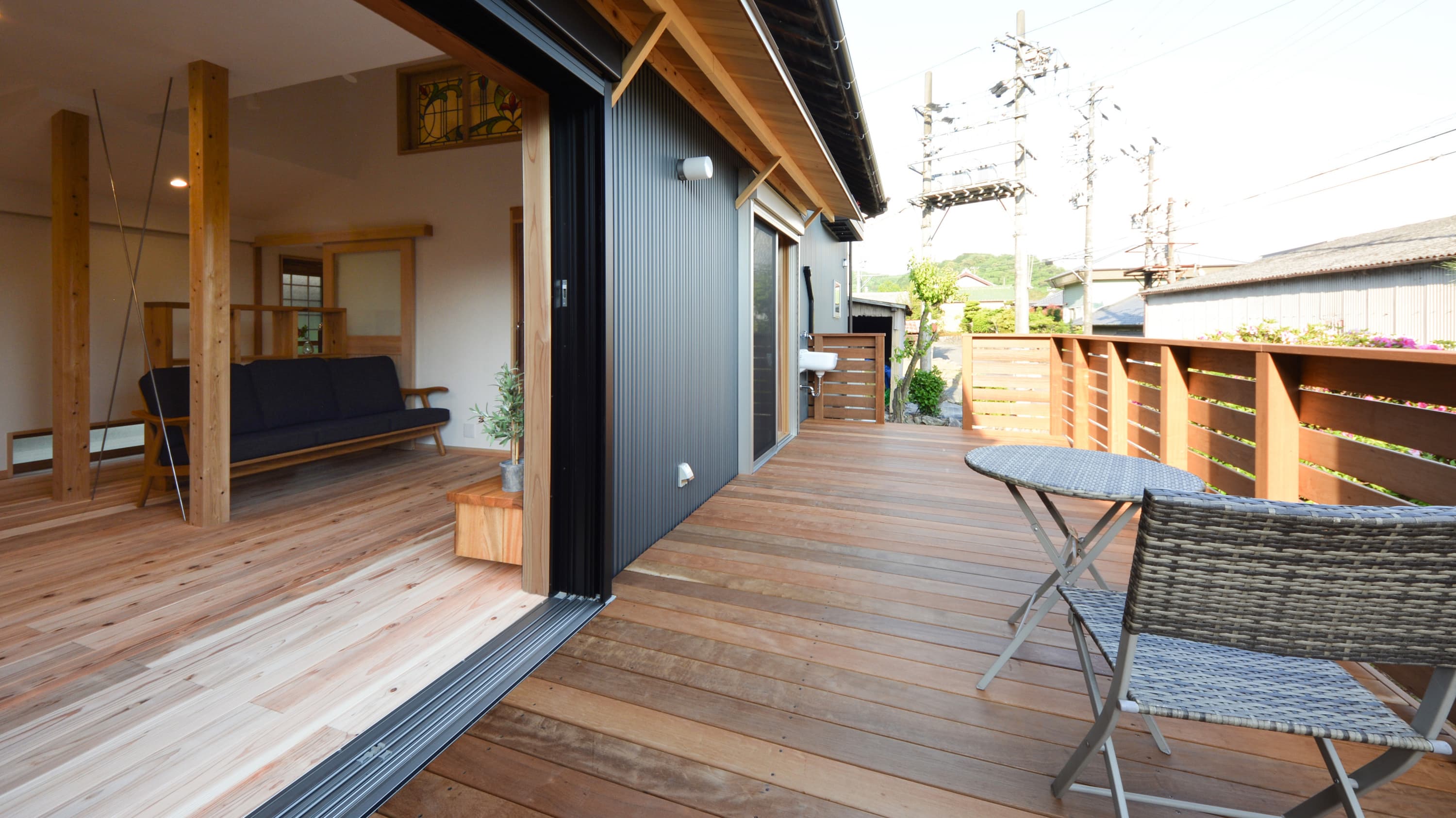 LDKからすぐに出ることができ、室内とデッキは床の高さが変わらないので、身体が不自由でも気軽に外の空気を楽しむことができるようになりました。